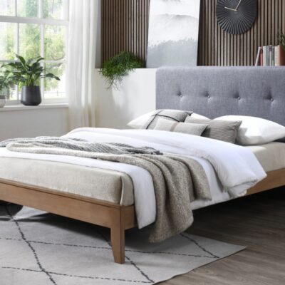 DELILAH QUEEN BED FRAME IN LIGHT GREY FABRIC ENQUIRIES CALL PETER 0435344775