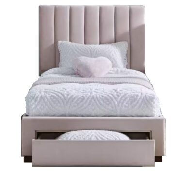 . MELINDA KING SINGLE BED FRAME IN PINK FABRIC WITH DRAWER – ENQUIRIES CALL PETER 0435344775