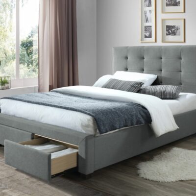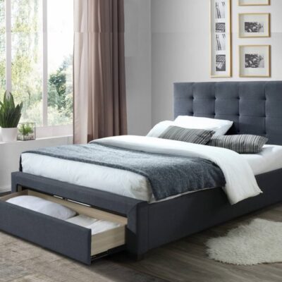 RHODES DOUBLE BED FRAME IN GREY FABRIC WITH DRAWER – ENQUIRIES CALL PETER 0435344775
