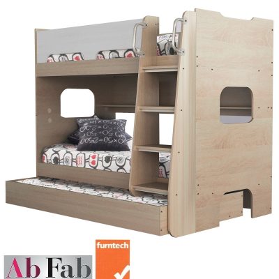 A BUNK BEDS SIDNEY TRIO SINGLE BED & TRUNDLE WHITE SANOMA OAK SEPARATES INTO TWO INDIVIDUAL BEDS LIMITED STOCK CALL 0435344775