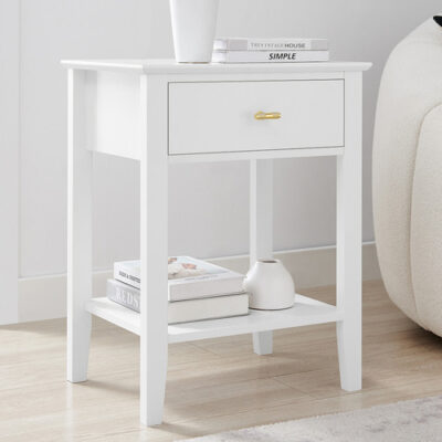 HARPER 1 DRAWER BEDSIDE CHEST TABLE WHITE CONTEMPO ENQUIRIES CALL PETER 0435344775
