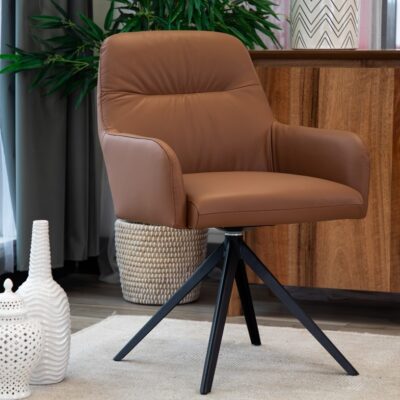 CALVIN DINING ARM CHAIR SWIVEL 100% LEATHER COGNA EARTH INFO CALL PETER 0435344775