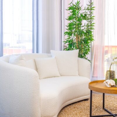 IBIZA 2.5 SEATER SOFA WITH 4 SCATER CUSHIONS WHITE FABRIC ENQUIRIES CALL PETER 0435344775