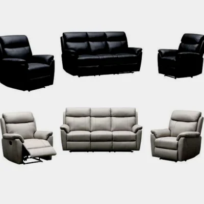 SINGLETON LOUNGE SUITE 3 SEATER WITH END RECLINERS PLUS 2 RECLINER CHAIRS 100% LEATHER BLACK OR TAUPE GREY ENQUIRIES CALL PETER 0435344775