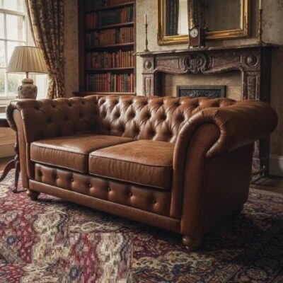 CHESTERFIELD WINSTON 2 SEATER LOUNGE SOFA FABRIC COLOUR TAN CALL PETER 0435344775