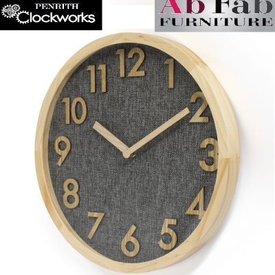 :Wall_clock – 35 cm linen Timber dial wall clock wooden natural frame