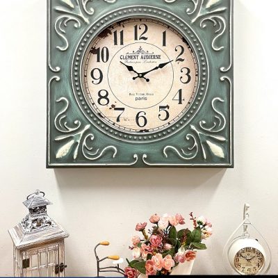 :Wall_clock – 60 cm Large Metal Audierne Green square Clock