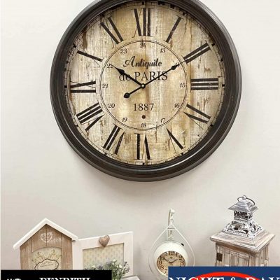 :Wall_clock – 62 cm Large Metal De Paris Vintage Brown