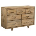 DRESSING TABLE AND MIRROR IN WIRE BRUSH NATURAL STAINED FINISH
