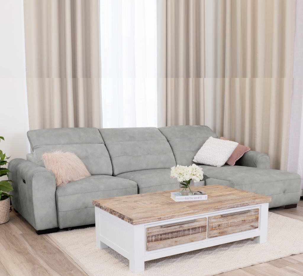 • LHF 2 seater with electric extension action and RHF chaise for superior lounging experience