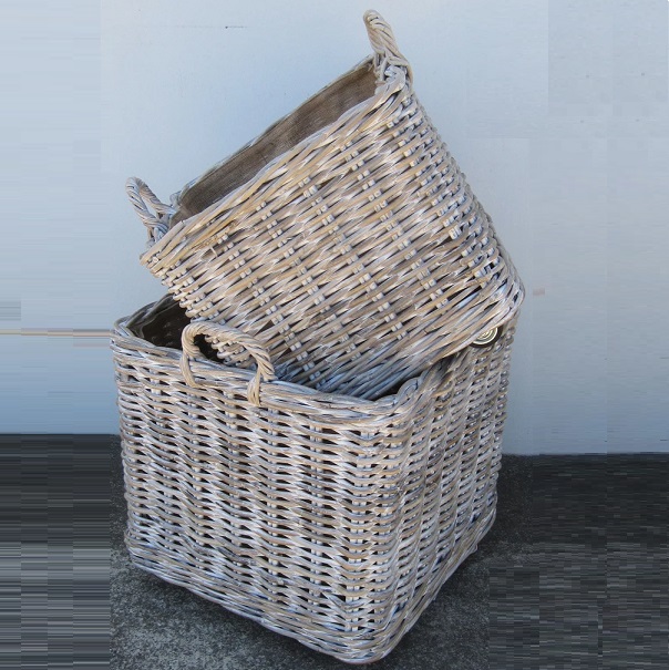 SET OF TWO LOG BASKETS WHITE WASH SQUARE