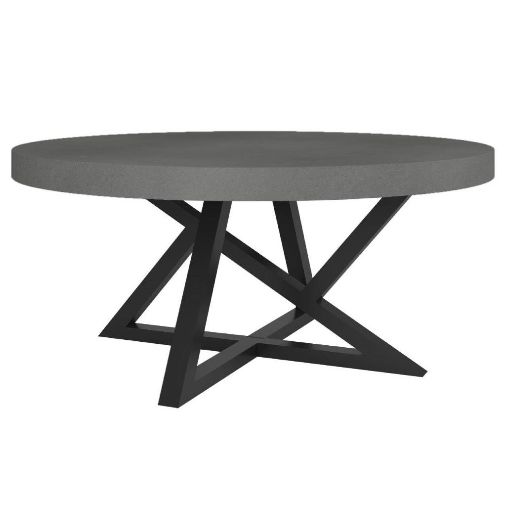 The Maze Round Coffee Table features a robust concrete surface paired with sleek metal legs, for a striking addition to your home.