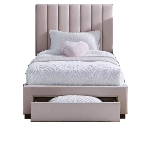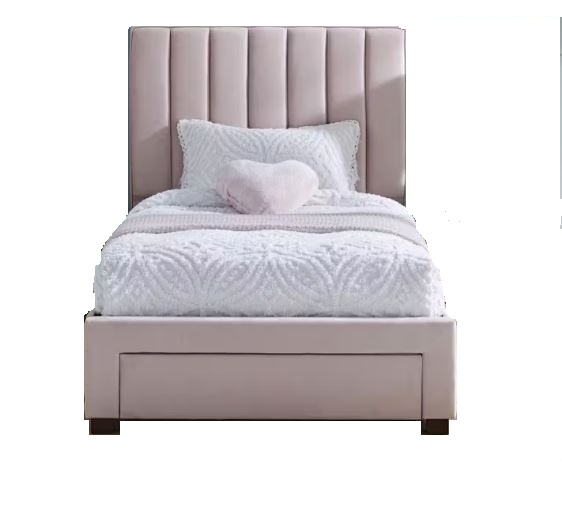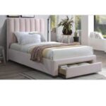 . MELINDA KING SINGLE BED FRAME IN PINK FABRIC WITH DRAWER – ENQUIRIES CALL PETER 0435344775
