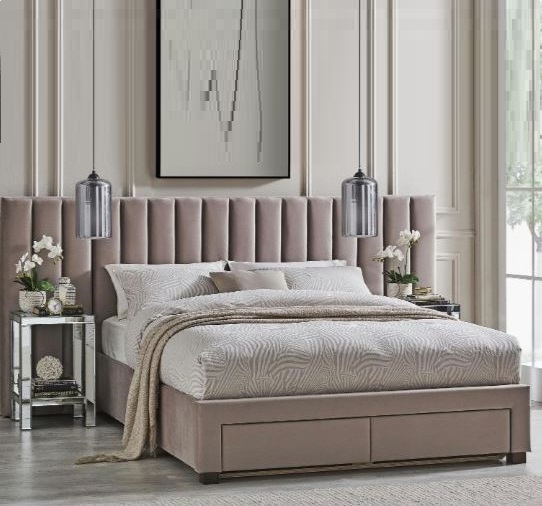 • Fully upholstered in polyester fabric ( Soft Velvet Touch ) in beige colour