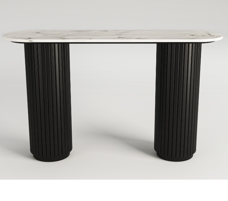 Add a touch of contemporary style to your home featuring white marble top with base in a contrast finish