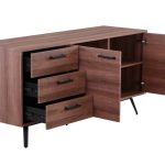 This range features 3D Light walnut wood-look laminate finish on a quality MDF frame, the sturdy black powder-coated metal legs provide an industrial yet contemporary look to your home interior – Fully assembled