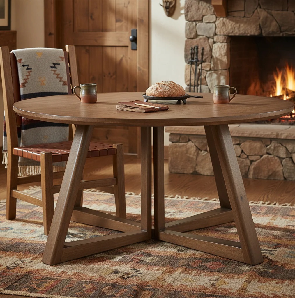 • The Santa Rosa round dining table features a warm, organic finish and a sturdy cross-base design, offering excellent stability and generous legroom for everyday dining