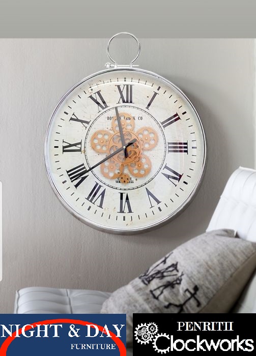 This beautiful Boston silver 53 cm exposed rotary gear Skeleton,is an amazing addition to any room in your home .This Luxurious Wall clock will be a center piece to your home and you will Be Hypnotise by its Skeleton inspired design As its exposed gear movements rotate in perfect unison.