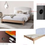 • Modern mix-material style, featuring bedframe in natural oak-look finish with upholstered headboard in contrast sandstone colour