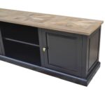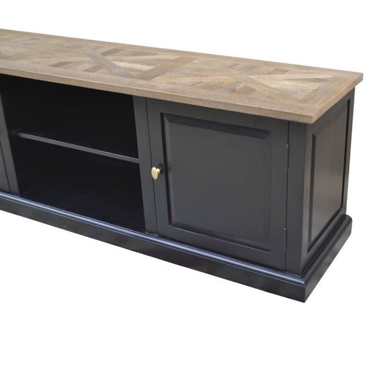 • The parquet pattern on the table tops and doors is artisan crafted by hand, and variations in the wood mean no 2 pieces are the same