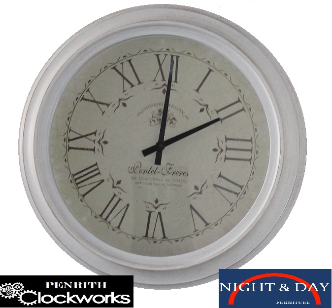Wall clock – 60 cm Large French inspired moulded polymer antique white